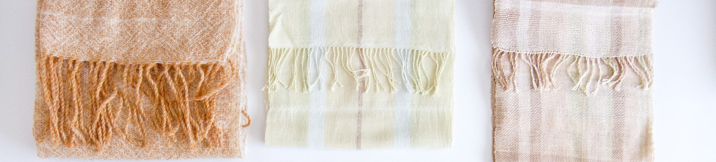 ストール、マフラー類。年中使えるコットンと、空気を含んであたたかいウールの布があります。ぬるま湯と中性洗剤でやさしく手洗いすればたいてい洗濯可。あとは干すときに直射日光を避ければ大丈夫。画像をクリックするとminneの商品ページに移動します。